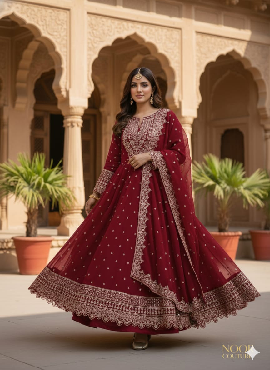 STYLISH PARTY WEAR FROCK (IF-660 ) FULL EMBROIDERED COMPLETE 3 PIECE SUIT
